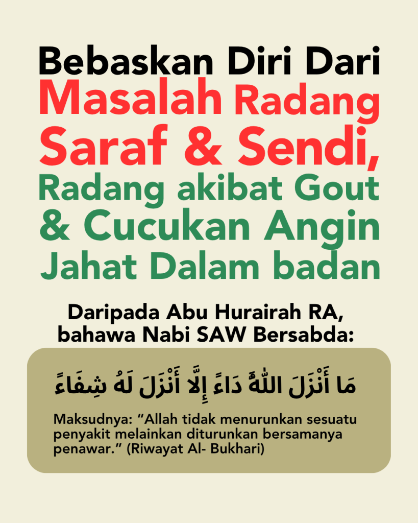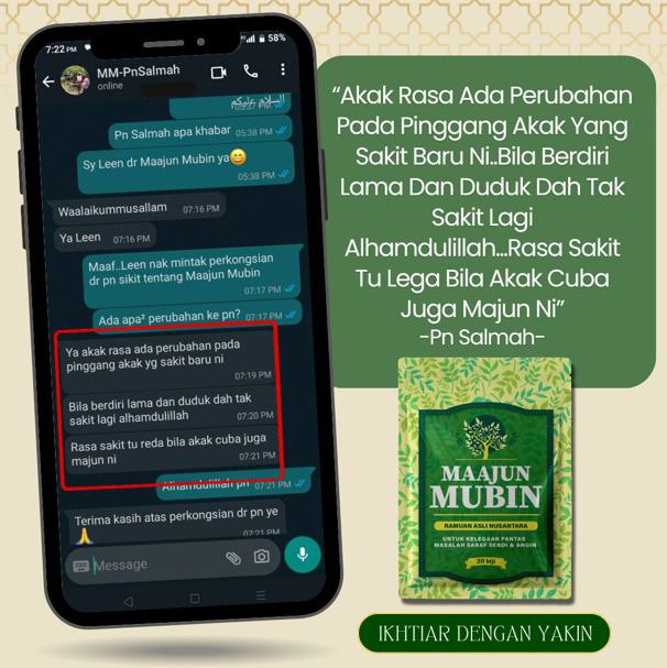“Alhamdulillah dengan izin Allah kebas-kebas pada kaki pon dah mula berkurangan lepas amalkan maajun mubin.”